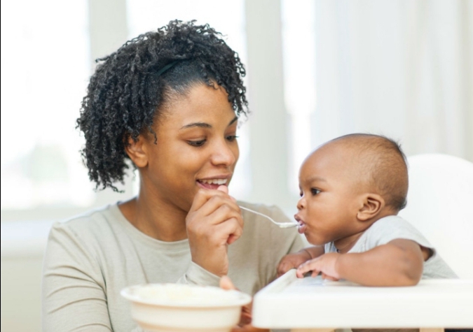 According to UNICEF, at six months of age, a baby needs more than breast milk to continue growing. There fore, start giving the child additional appropriate food at six months while continuing to breastfeed until the age of two years and beyond.